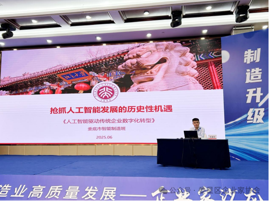 易海明主任以“制造業(yè)如何搶抓人工智能發(fā)展的歷史性機遇”為題,從認識人工智能模型,培育人工智能模型的迫切性,培育人工智能模型的戰(zhàn)略性要素,詳解人工智能模型培育案例和趨勢四個方面系統(tǒng)剖析了人工智能技術演進脈絡及其與制造業(yè)融合的核心場景,結合國內(nèi)外標桿案例,為在場企業(yè)家描繪了AI賦能研發(fā)設計、生產(chǎn)流程優(yōu)化、供應鏈管理、質(zhì)量控制和精準營銷的全鏈條圖景?;迎h(huán)節(jié),企業(yè)家結合自身轉(zhuǎn)型痛點踴躍提問,易主任就技術選型、投入產(chǎn)出比、安全風險等實際問題進行了針對性解答,現(xiàn)場交流氣氛熱烈。