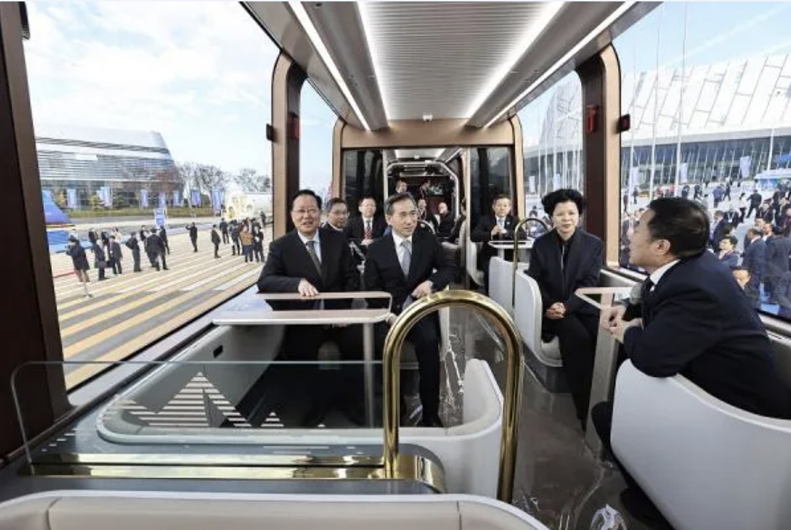軌道交通博覽會期間,省長毛偉明,中國國際貿(mào)易促進(jìn)會會長、黨組書記任鴻斌一行試乘中車新研發(fā)的雪山旅列。